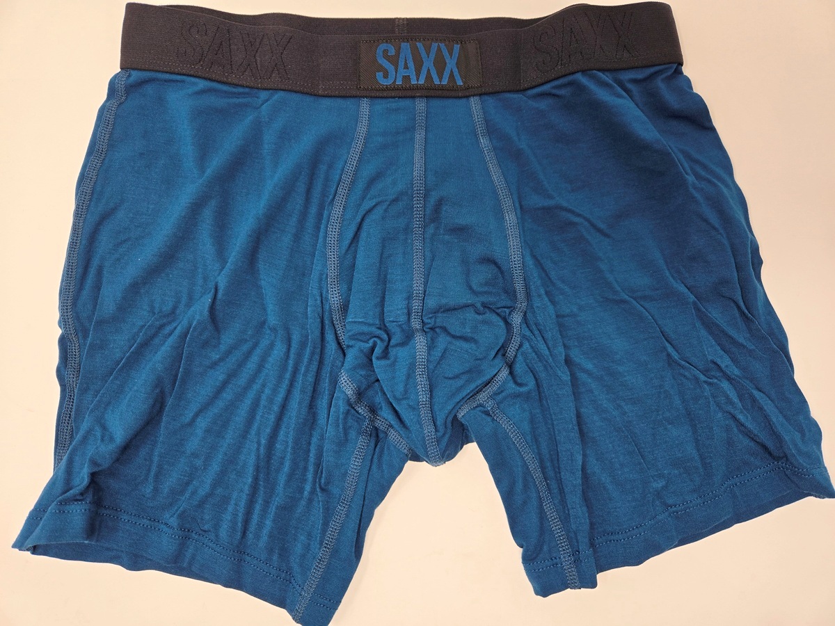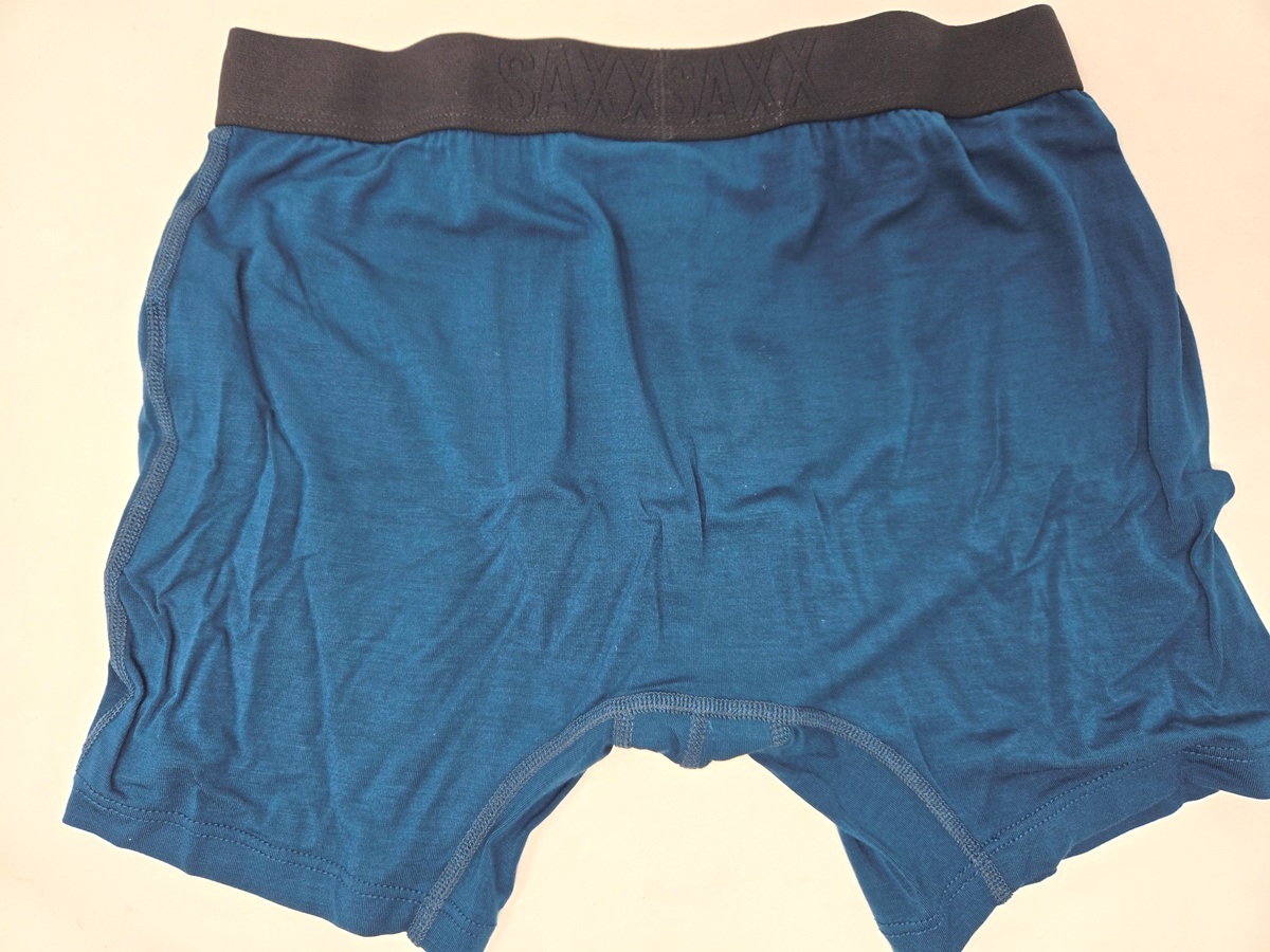 基本US:Sサイズ(JP:M)なんだけれど、股下が少なかったり素材に伸縮性が少ないとキツくて履けないやつがある。まさに高耐久普段履き向け「SAXX DAYTRIPPER」がソレで、Sサイズだと股下不足で食い込みが激しく履けないし、Mだとガバガバ。