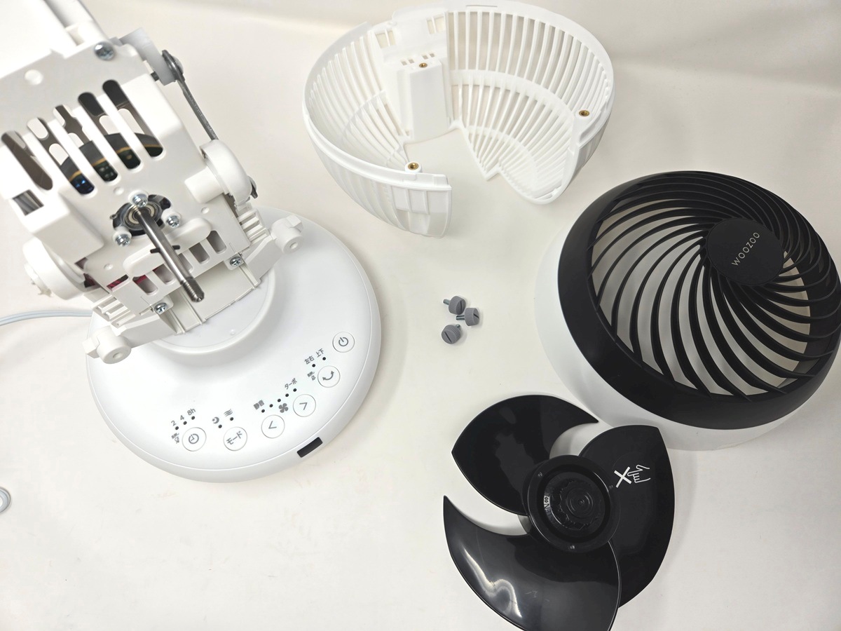 この世のサーキュレーターの大半が汚いのは、これが出来ないから。溝だらけの構造なのに水洗いできないからだ。これができるならズボラな俺でも腰が上がる。綺麗に保てる…はず。