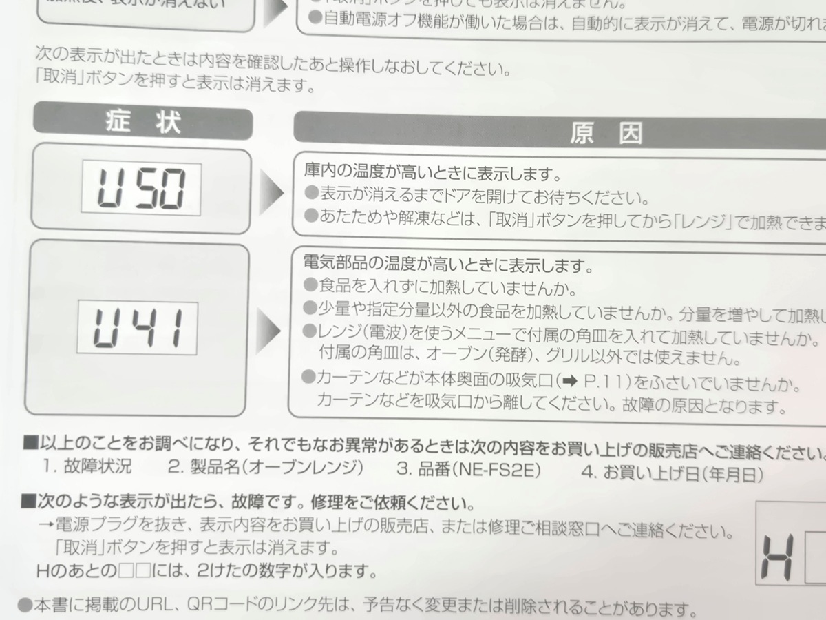 庫内が熱くなるとエラー「U50」表記されるのビビる