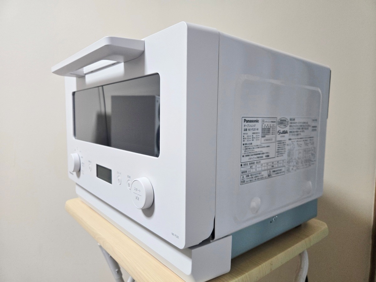 入手したのは、シンプルデザインで、マット調ホワイトのオーブンレンジ「Panasonic NE-FS2E」である。2026年2月発売、記事を書いている現在は2026年3月なので超最新作。