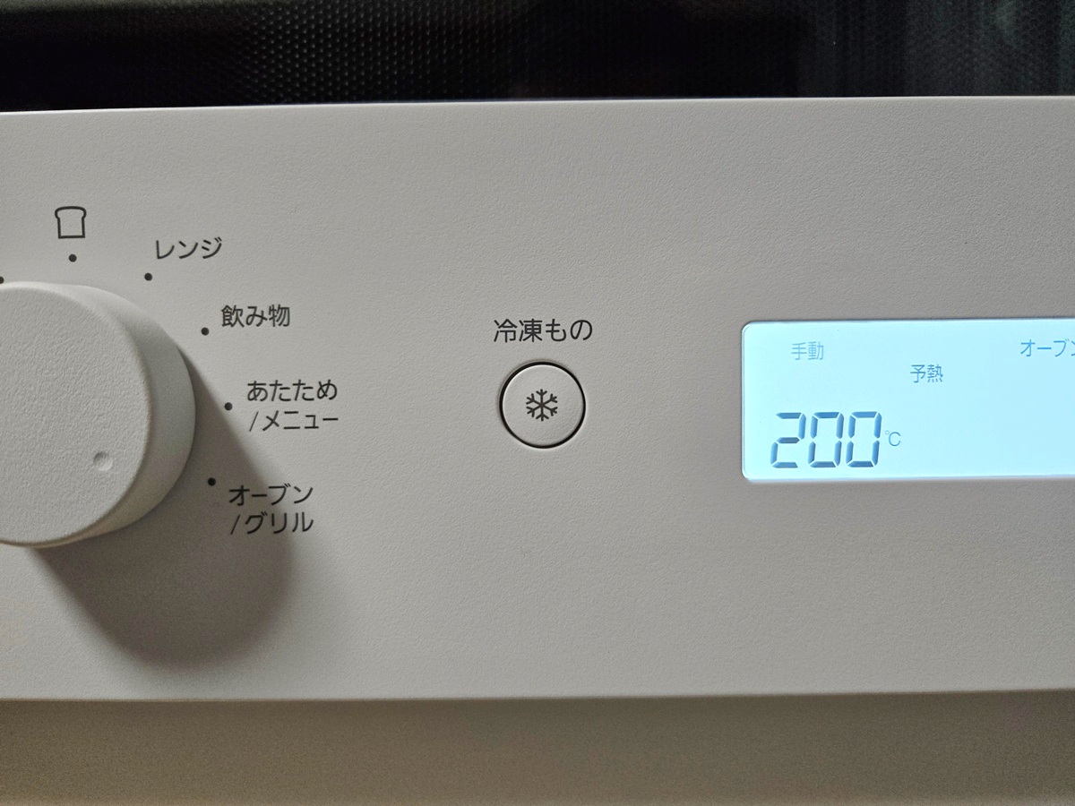 なおオーブン機能・レンジ機能共に途中で庫内を開くのは問題ない。開いたら勝手に止まって、閉じた後スタートボタンを押せば再開される。