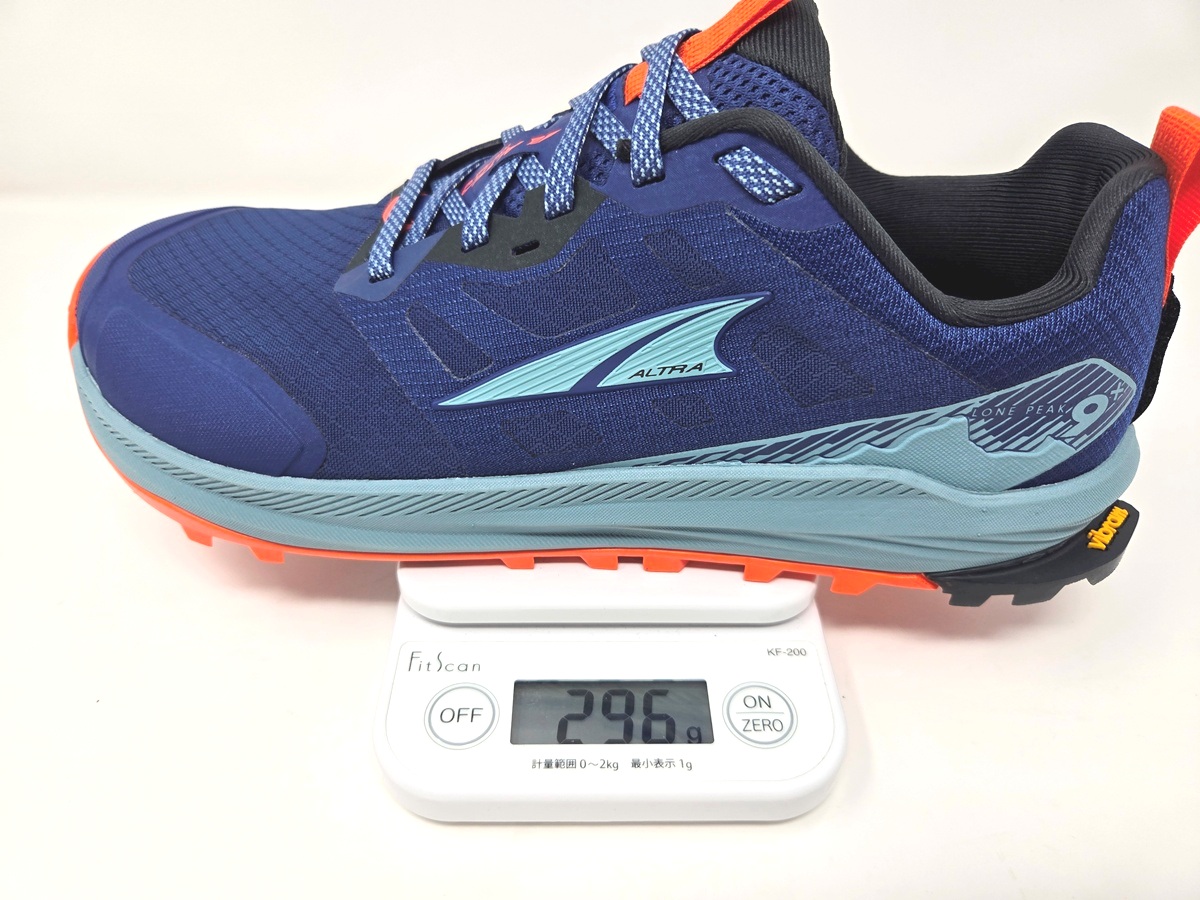 重量はメンズUS8.5(26.5cm)で、「296g」だった。