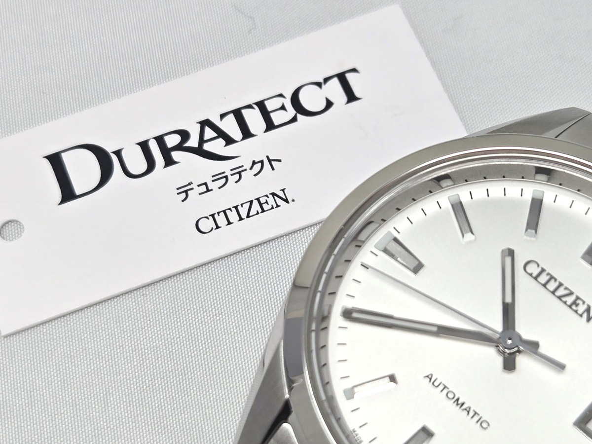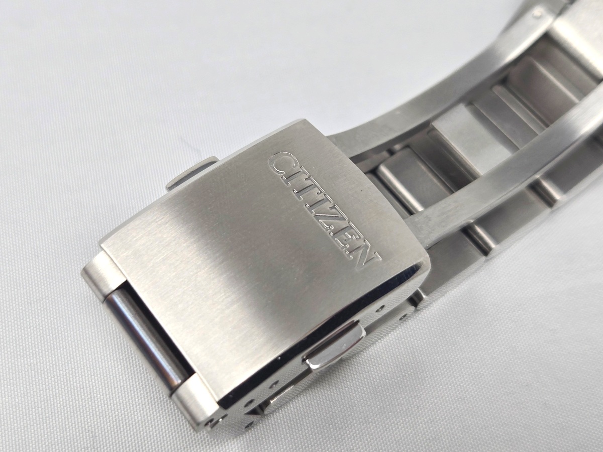 素材はステンレスで、シチズンお得意のデュラテクト(防傷コーティング)も施されているらしい。見た目や触り心地では良く分からん。